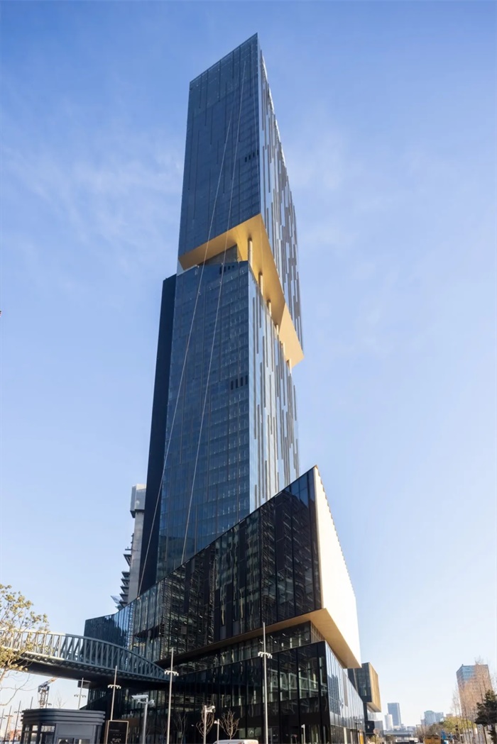 云际尚浦采用了偏核心筒,而非普通的中央核心筒,将服务设施和电梯伸出建筑立面之外。这使得室内楼面摆脱设备和结构的阻碍,从而形成了大型、 高效和适应性强的办公空间,可以满足成长型和成熟型机构的需求。偏核心筒设计在250米以上的建筑中尤其独特,仅占世界500座最高建筑的3%。摆脱了柱子和建筑服务设施,如电梯和垃圾道,楼层可以轻松配置,以适应未来企业拓展、协作和不断变化的业务需求。设计体现了上海充满活力的创业精神和当代工作环境。