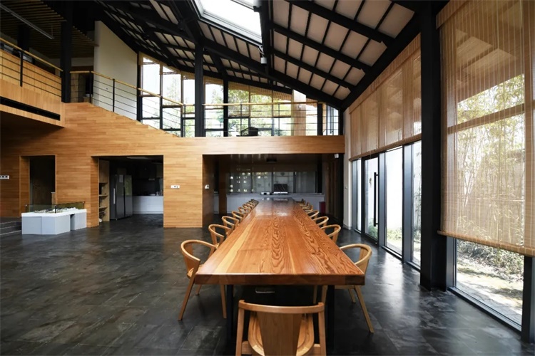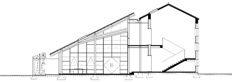 其次,对于原本质量很差的附属用房,原来的厨房、杂物房等等,进行了新的规划。驻场团队需要较大的工作空间,于是采取了“大庇天下寒士俱欢颜”的策略,将院落覆盖起来,为了减少大屋面对乡村机理的影响,采用了三处折叠的方式,化解大屋面的体量。同时为了诚实地表达新建部分,这个屋面用了全新的钢结构和金属瓦,这也是和昆曲学社相同的处理手法。