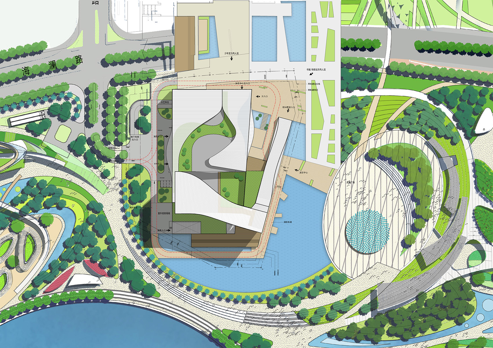 ▼表演艺术中心总平面图,Bao’An Performing Arts Centre – Site Plan © Rocco Design Architects