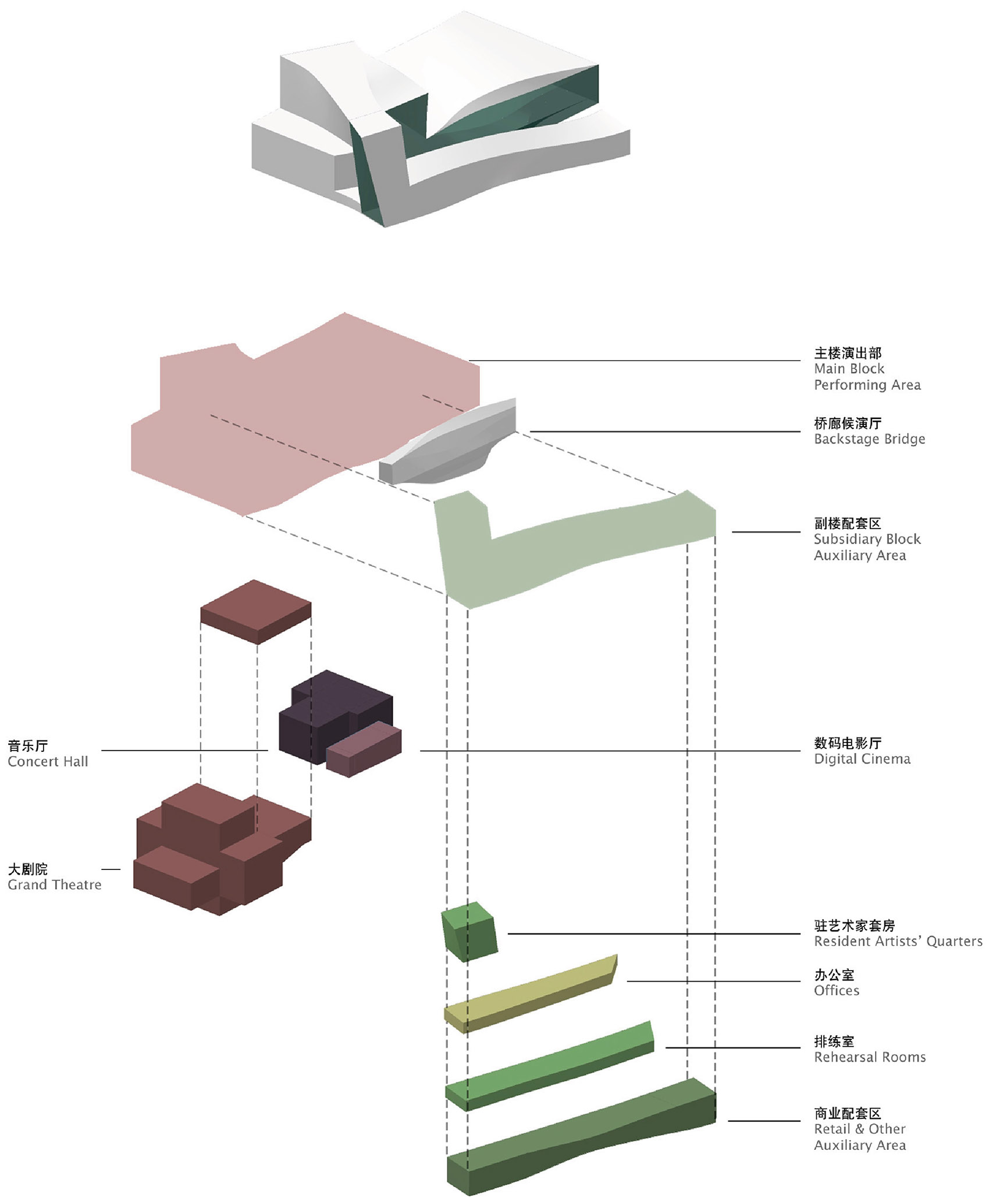 ▼功能体块分布示意,Diagram – Functions © Rocco Design Architects