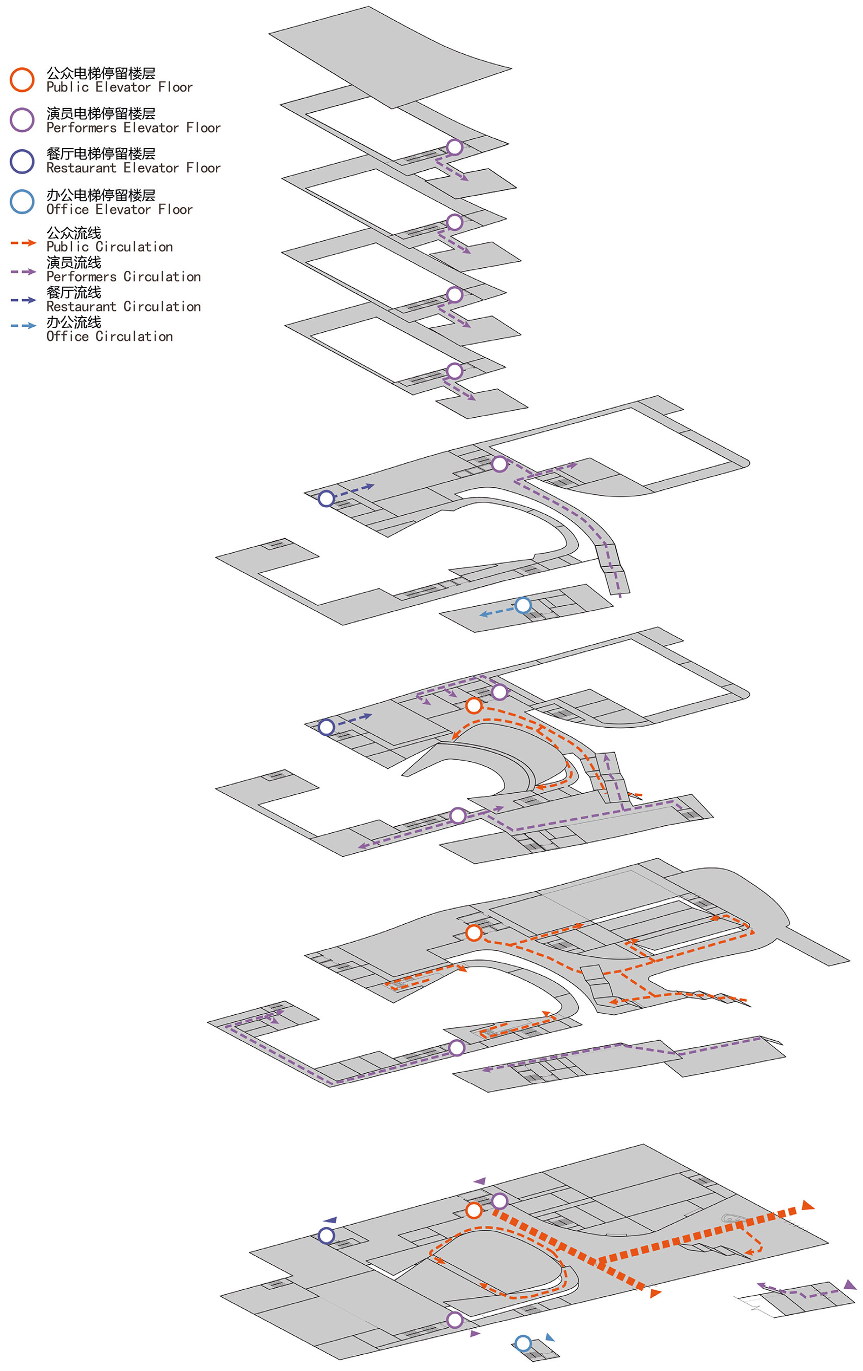 ▼功能区分布示意,Diagram – Functions zoning © Rocco Design Architects