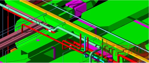 根据甲方提供的图纸,搭建出机电、建筑和室内装饰的精确BIM模型,在此基础上进行设备管线碰撞检查、优化调整,通过BIM模型指导实际施工。