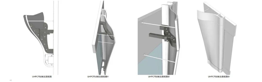建筑表皮与第五立面通过不同的方式参与整体生态性的构筑:沿城市道路设置双层立面,通过数字雕刻,拟态鲨鱼鳃的肌理,设计师根据日照分析确定具体形态与方向,作为充满形态感的立面构件。双层结构亦为调节通风与室内温度起到积极作用。