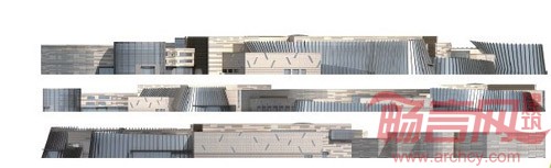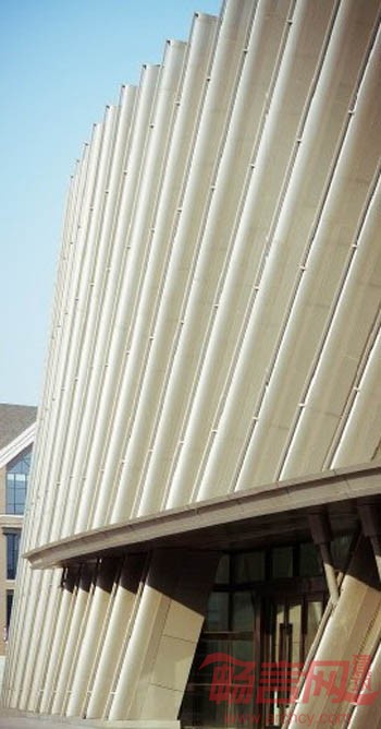 2、外立面处理,继续保持流动感,包括石材和玻璃幕墙,都是采用一种具有韵律的波浪感觉。