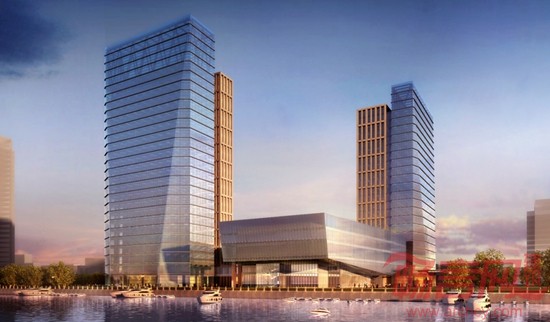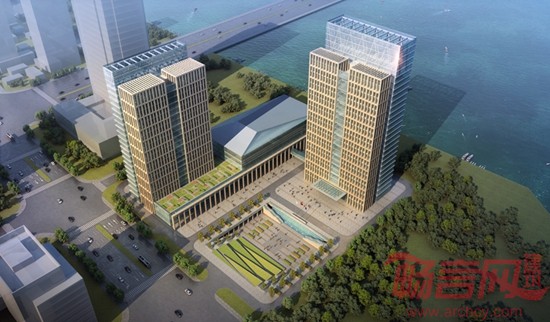 本项目位于曹妃甸工业综合服务区南区的最北端,与综合服务区的行政中心隔纳潮河相望,用地位置十分显赫;用地南侧邻城市道路,西侧、北侧均朝向水面,东侧为城市绿化带,景观资源十分优越。本项目是集办公、展示、商务、餐饮、休闲娱乐、指挥中心、信息和金融中心功能为一体的综合体,其中办公面积为主力,占一期总规模的约73%,占地上建筑面积的约89%。