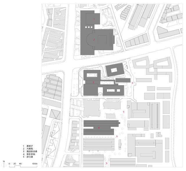 临近景德镇市中心,大面积20世纪中叶建造的瓷器生产工厂形成了当地独特的城市遗产。在该项目再开发的第一个阶段,基地西部的现有建筑得到改造,成为城市结构中一个充满活力的公共场所。在项目的第二个阶段,基地东部将转变成为一个表演艺术校园,设有学院、演艺场所和其他附属设施。