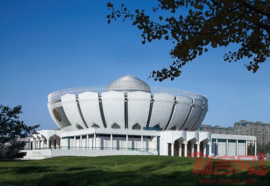 宁夏大剧院地处银川城市核心区人民广场东侧,南临北京路,北为文化艺术中心,西面和新建的宁夏博物馆、图书馆围合成东组团广场。由于博物馆及图书馆均为方 整的造型,大剧院采用了外方内园的图式,并通过工作模型推敲了三者的体量关系,使之成为一个完整的组合,并将作为主体的大剧院的形象突显出来。银川是宁夏 回族自治区首府,宁夏的地域特色伊斯兰文化的传承是我们所重视的,因为这使建筑的“唯一性”成为可能。我们希望宁夏大剧院能够与北京、上海、广州或在其他 一些地方的大剧院区分开来。当然,不言而喻,地域文化的表达不是简单的移植而是在全球化背景下的再创作。经过抽象、提炼、最后升华为符合工业化生产方式和 现代人审美理想的建筑意象,就是“独创性”。“花开盛世”,较恰当的表达了我们对“现代的,中国宁夏的”的设计创意。