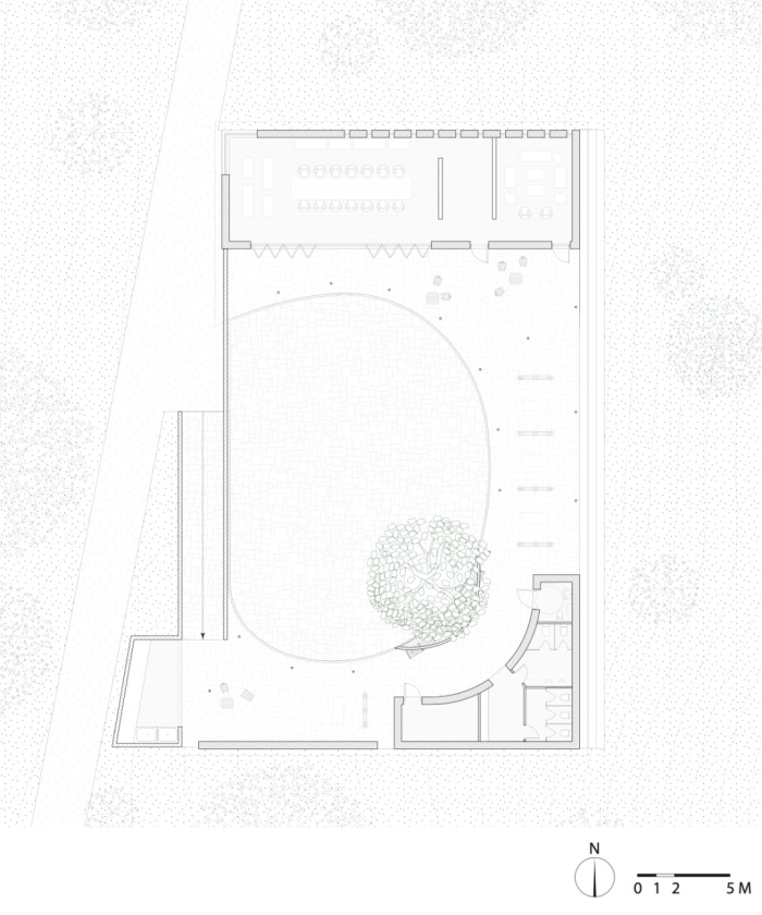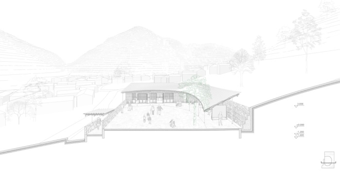 用新建构回应传统成为建筑本体设计的策略。屋面找形来自算法几何的生成,双曲面形式超越了本地工匠的理解范畴,但这种非在地的技术可以通过与工匠的交流建立营造法则。建筑采用直纹曲面单坡屋面,能迅速排除雨水,也便于指导村民通过简单的数学方法定位、找形并施工。屋面材料采用当地的小青瓦,不仅因其为未来使用与维护提供便利,而且容易根据几何找形来搭接,后来被称为像素化找形,可以对高维度复杂曲面进行几何降维。