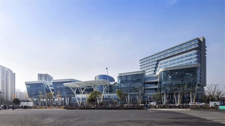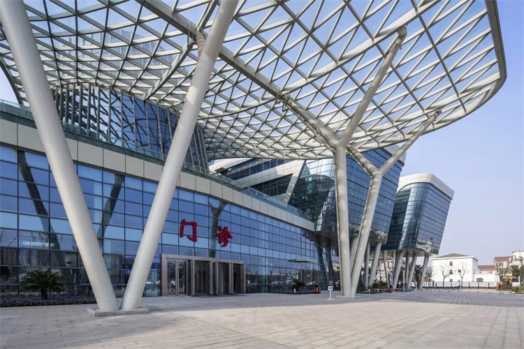 该项目对幕墙进行墙身系统策划,在满足节能要求的同时,适当提高外墙热惰性指标,并提高外维护系统的隔热性能,改善室内环境。内装修设计呼应建筑体形的灵动,医疗主街大厅等公共空间天花设计采用三角形铝板,与建筑空间曲线有机结合,地面铺装线条与标识相结合,使公共空间更具有导向性。此外,不同功能区域采用差异化装修,体现功能特色。