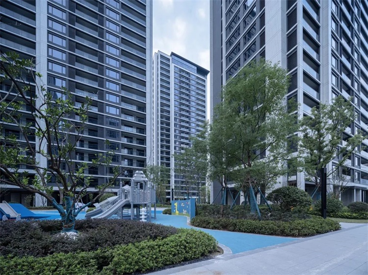 钱江世纪城飞虹华庭、仁孝华庭在公共配套上除了社区物业、服务,文化活动用房之外,住宅首层采用架空层的设计,为邻里交流提供了充足的场所,延续村落中的社区记忆,增加人们活动空间的丰富性。