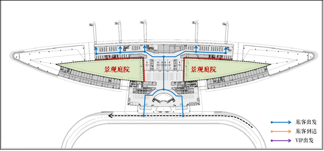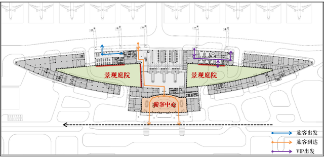 - 引入庭院优化航站楼室内空间环境和效果;