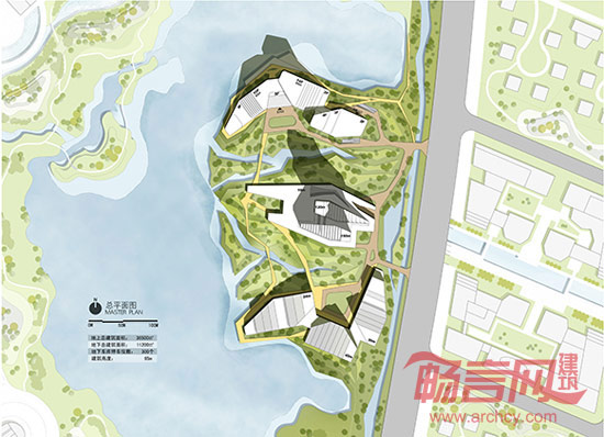 同时提升了建筑的视觉效果,与位于中部的酒店和位于南部的会展中心一起,岛上的全部建筑和景观作为一个整体,塑造出“山脉”,“水岸礁石”的整体景观意向。