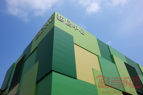 主楼整体设计以黄金分割的手法,通过体量的凹凸大小、色彩的渐变产生了极强的视觉冲击力,那一片绿色,春意盎然,令人心情舒畅。