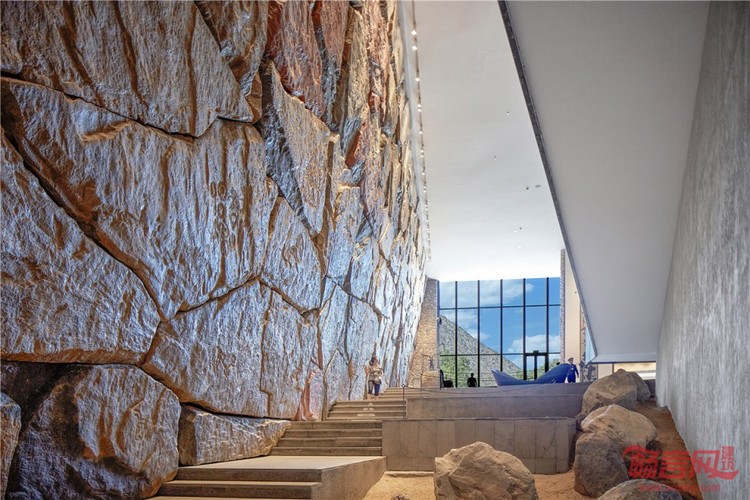 艺术馆位于岩画遗址景区的出口处,它的出现,不仅充实整体景区游览的体验节奏,更像是给略微疲惫的参观者准备的落脚驿站。这里是景区参观流线的终点,更是回味传统与当代艺术互动交流的起点。游客可以尽情欣赏感受五千年前的历史、艺术、自然同现代精神的交融与对话。