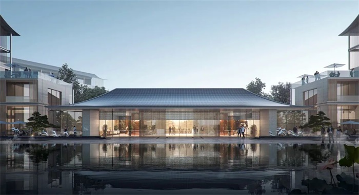 项目团队提出以竹为核心的新东方自然主义的设计理念,充分研究当地的山水骨架、植被群落、民俗村落肌理等自然风貌,修复、提升环境品质,激发场所价值,展现竹林丰茂、柔美的自然特征。以轻介入的方式,将丰富的活动空间嵌入自然元素中,建筑群体分合有致,与自然和谐共生,打造竹水交融的大地景观。