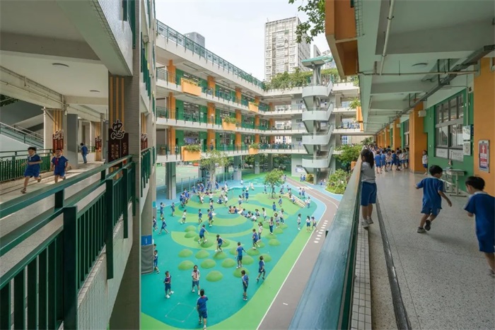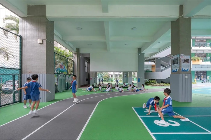 该项目利用景观设计更新西侧小学部教学楼周围的户外空间,并通过将内庭院和篮球场与校舍周围几处未明确定义的空地连接在一起,创建了一个环形活动空间。小学校园在视觉上变得整体统一,未利用的土地被赋予了意义和功能,使其得到有效利用,学生的户外活动空间也比以前大了很多。