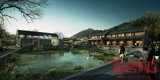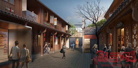 同时,将古街的建筑布局和水系关系顺应已有的村落肌理与水道。另外,整个韩岭古村的街道约600米长,我们商业动线的开放空间也严格遵守现代人购物体验的行为方式,希望在人的购物路径上创造出移步换景的效果。