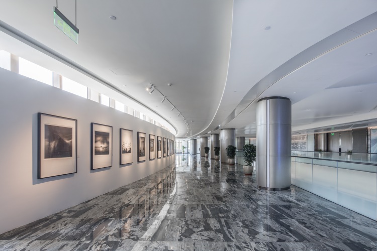 周边不时有人经过,没有商业街的拥挤喧闹,也不会产生类似高墙窄路的压迫,更像是有着花园气质的第三空间,绿意、休闲、宜人,一个不少。欣赏着玫瑰金幕墙上的夕阳红霞、云卷云舒,幕墙犹如裙摆般的婀娜曲线 ……绷紧了一天的神经也随之渐渐放松下来。