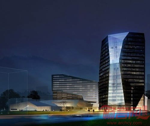 这是一个国家高新区创新创业园区的中心建筑。建筑群体包括3万平方米的办公楼,300床的四星级宾馆,会展中心及交易大厅。设计受煤化工业和当地地理特征起发,力图创造一个代表山西新世纪新形象的地标建筑。设计概念上,把煤的“自然形成,人工利用”(自然地理的层积到人力的开采和雕琢)所反映的人与自然的关系通过建筑与大地的关系表现出来,通过对大地景观的再创造,对煤的形成和演化进行暗示,让建筑成为体现这种沉积演化的载体。广场作为了整个园区的中心,四大功能组成部分——办公、酒店、会展中心和交易大厅分布在广场周围,相互对话。体量分散的处理也解决了使北部广场阴影减少的问题,在城市设计的层面上,北部广场和下沉的庭院/地下餐厅,与中心广场一道,共同构筑出了一个立体的供高新区员工活动的市民广场。