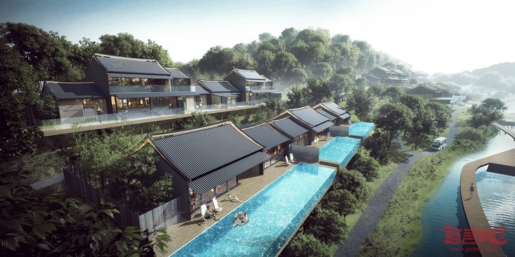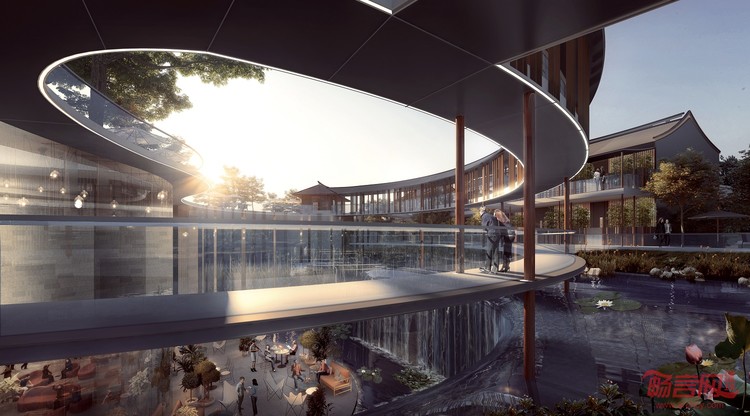中标建筑方案突出了当地传统的岭南建筑风格,采用典型的斜坡屋顶打造深植于当地文化、独特且隐蔽的酒店体验。岭南风格的斜坡式屋顶设计呼应了当地气候,有助于排水,并保护屋顶不被热带气旋所破坏。该设计诠释了优美、传统的人字屋顶和装饰脊,以当代手法致敬岭南文化。