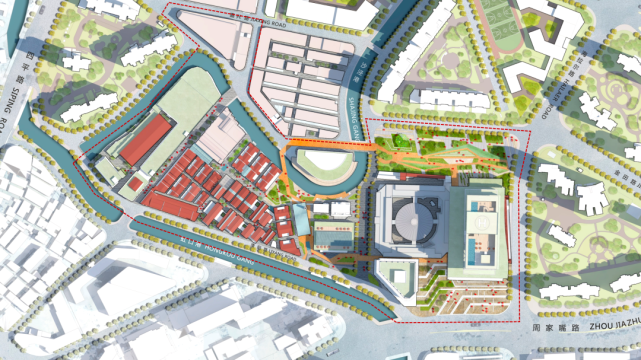 为了留存与善用这浓浓的市井气息,FTA摒弃了大拆大建的传统城市更新思路。延续虹口里弄的历史肌理,多样化配套规划,打造全天候的艺术休闲社区。南北向哈尔滨路风情商业街道、东西向滨河商业街道设施升级、管线入地、界面整治、露天业态等多种街道景观治理措施营造文化氛围,将更多的步行空间让给游客与居民。
