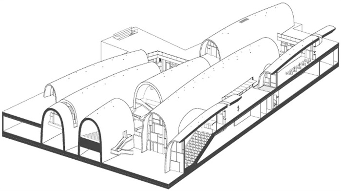 事实上,材料和结构的概念始终在演变,“真实”也是被构筑出来的。“建筑是在一种叙事下建造的,而这种叙事比建造的真实性更为复杂……建筑的建造讲的并不是真实与谎言之间的对立,而是在讲一个故事,而这个故事就变成了问题本身。”例如,从拱的正面的视觉效果来说,为了取得拱壁的轻薄之感,建筑师在拱的端头减小混凝土墙体厚度,内侧向外略微打开,同时也是拱体结构受力分布的反映。之所以提到这个问题,是因为建筑不仅是材料的搭建,还有建筑师愿望的表达。也即是说,建造的目的不仅是为了保存真实,也是为了赋予其以人文面貌。