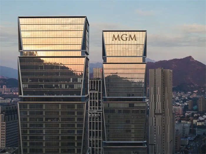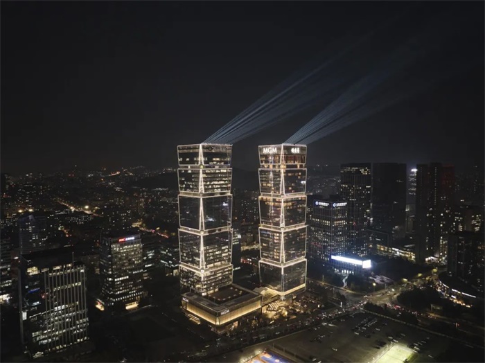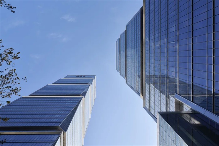 每座塔楼由五个“珠宝盒”垂直堆叠而成,象征着新中央商务区的繁荣。这些盒子在角落倒角,以强调它们的棱镜特性,并减少风载,随着高度上升而逐渐减小,形成优雅的轮廓。盒子之间设有凹陷的机械楼层,以实现高效的机械通风。