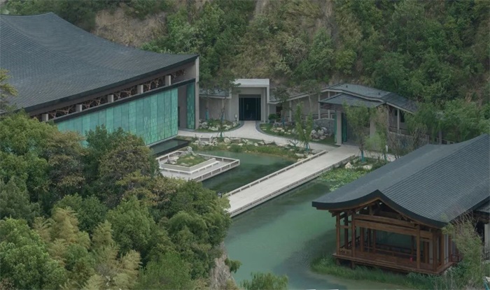 青瓷屏扇、木构、铜瓦屋顶,有着绝妙的光影效果总建筑面积10万方的“宋代园林”,脱胎于无数张宋画形成的气和韵,被建筑师巧妙转化——主体建筑来源于马远的《华灯侍宴图》,宋画经典“三远法”在园子里随处可见,还能在现场看到实景版《谿山行旅图》。