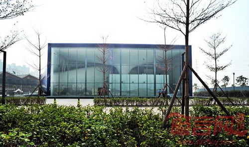 展览中心坐落在南山区鲤鱼门,正好是东滨路和月亮湾路的交汇处。整个展览馆是一个长条状的矩形块,这样的设计与月亮湾路德长条形道路设计相平行。由于地势的关系,展览中心的正面正好直对马路,建筑的尾部成开放式延伸。整个结构布局和空间设计就传达出这座城市的发展轨迹:有容乃大。
