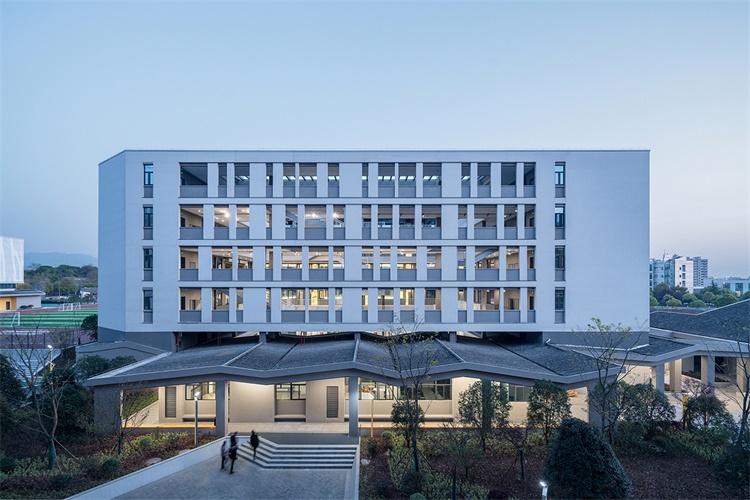 金海路校区拓展工程建筑设计以“形式追随功能”为原则,大体量的建筑形态塑造特征鲜明的几何形象,打造校园场所精神。建筑风格简约、平朴,色彩淡雅,简洁明快,与校内的建筑风格相统一。