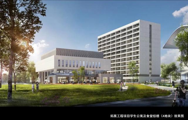 学生公寓楼1层为生活配套用房;2-13层均为学生公寓(共计285间)。食堂综合楼1层为特色食堂,2层为快餐食堂,可容纳620人同时就餐;3层为体育活动用房。建成后的食堂将为师生提供更丰富、多样化的就餐选择,更宜人的就餐环境。