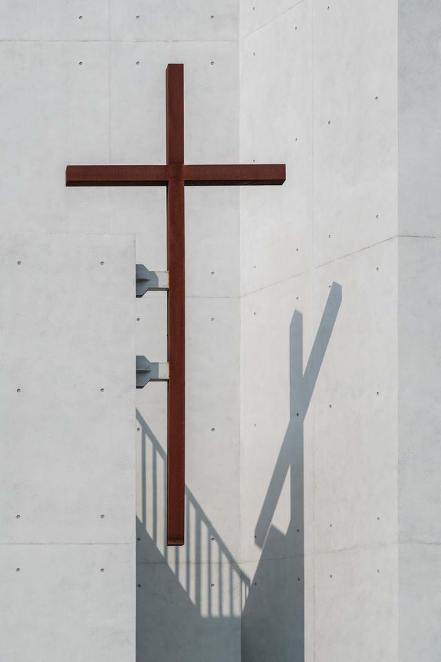 上部天窗设计,全天候漫射光线照亮讲台,与大堂间形成明暗对比,主墙明亮的十字架投射于空间深处,教堂内氛围更显宁静安祥,尽领与神同在的真实平安。