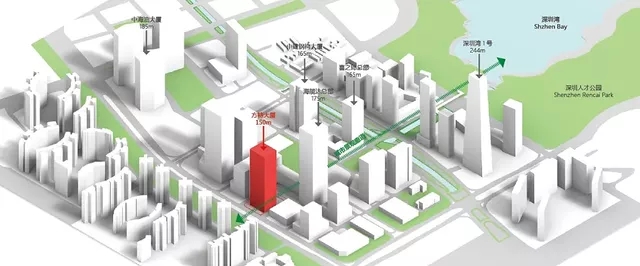 华强方特作为国内知名的大型文化科技企业,专注于文化和旅游产业,以成为国际一流的欢乐制造商为愿景。同时,后海总部基地集聚各集团的总部大厦,地理位置优越,是一个集中的形象展示区,这也是该项目所带来的挑战与机遇。