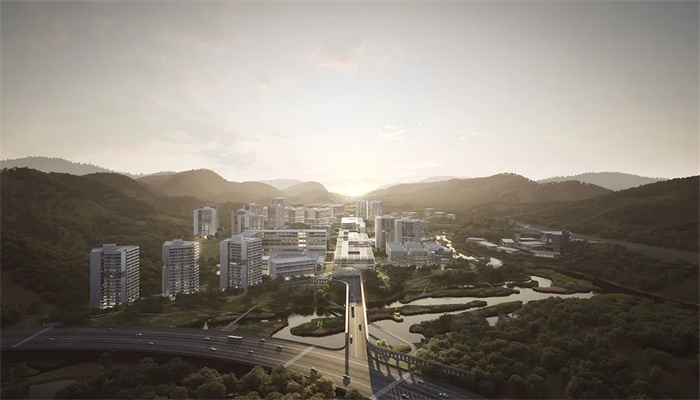 深圳职业技术大学深汕校区选址位于深汕特别合作区赤石镇,临近甬莞高速赤石收费站,四面环山,赤石河和碗窑洞河流经,山水资源丰富,其独特的文化与地理环境激发我们构建一所城乡共生、回归自然与文脉本底的山水校园。