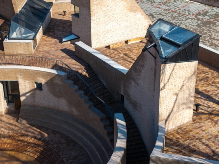除了运营模式上的创新,此次获奖的西乌素图村民中心也很好地体现了张鹏举一以贯之的设计理念和手法。该项目建筑表现摒弃了僵化的功能分区与封闭空间布局,以一座渗透性圆形庭院为核心整合多元社区活动。该庭院不仅具象存在,更组织起连续流线与空间指向,将多个开放连通房间纳入整体。一条从首层延伸至屋顶的坡道,形成连续公共空间,让建筑重新定义并重构公共与私密边界,突破传统层级界限。独创的导拔风系统、回收的旧砖、延续原有村落肌理的空间布局、丰富的立体流线系统都体现了张鹏举在设计中对地域乡土的尊重、以及对“平实建造”、“适洽生成”的持续探索。