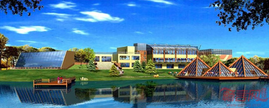 设计理念:充分利用湖水的优势,把外环境和室内环境结合起来,为了减少建筑对湖面空间的压力,建筑做得很矮,室内网球场由于功能要求较高,设计上在上部做了虚化处理,使其减少了体量,建筑颜色上采取了中性化的处理方法,同样减少其体量,从而使建筑和湖面在体量上结合得很好。在此即可凝澈思绪,又可尽情体味回归大自然的返璞归真。项目现已建成营业。