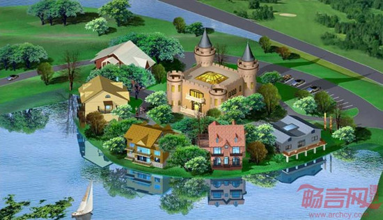 天湖国际会议酒店别墅、俱乐部鸟瞰效果图(二)
