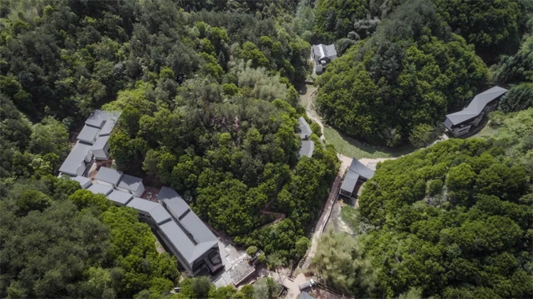 于是,双溪书院的七个单体建筑,除了接待大堂(也做餐厅)和茶室两个公共功能的建筑外,都被分别隐藏在四条张开的山谷内,互不相望,各自以各自独特的视角存在,这种关系有些像传统山水画中的散点透视,每个局部自成一体,又能够“拼贴”成一幅完整的画面。