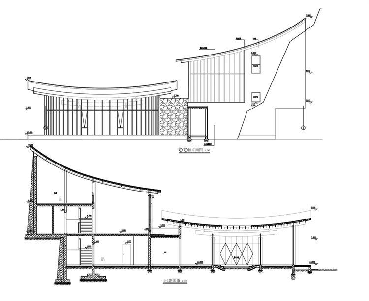 当建筑契入自然时,一切所谓专业的设计或阐释都应当顺从于自然的某种“力”或“势”。自然的包裹使建筑必然由一种对抗转到顺从,或者更恰当的说是一种融入或共生。就如中国山水画中房子总是若影若现于山水之间,这种画面中的诗意似乎拉近了我们和古人的距离。