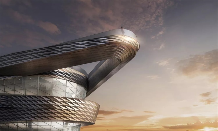 建筑造型中的螺旋廊道直接反映设计理念的真实逻辑,而立面语言则从钱塘江古海塘五纵五横的模块化筑塘法中得到启示。