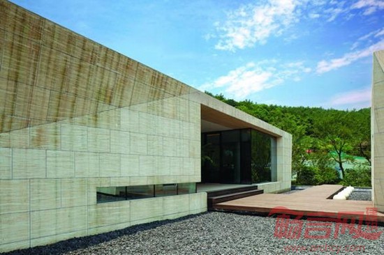 项目地形上最大的难点在于基地地形的不规则。因此,在规划设计中,充分考虑地形现状,尽量把建筑做齐整,减少凹凸,庭院也做得很方正,提高用地的经济性。别墅设计上,以良渚石文化为主题,立面向奇普菲尔德设计的良渚博物馆靠拢,采用石材干挂,线条简约,并设计院墙,让建筑成为风景的一部分。