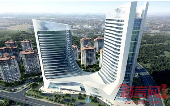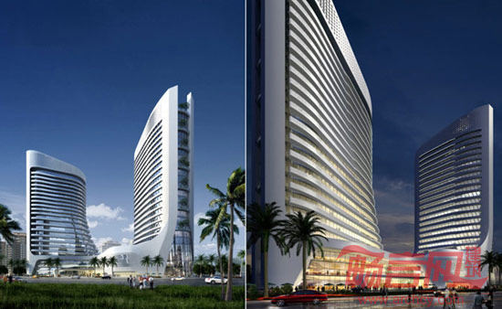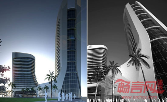 在整体造型上,采用流线型的平面布局,双塔和裙房连为一体,横向的建筑立面处理以及材料符合海南的热带气候特征,同时流畅的线条也充分体现了滨水城市-万宁的特点。