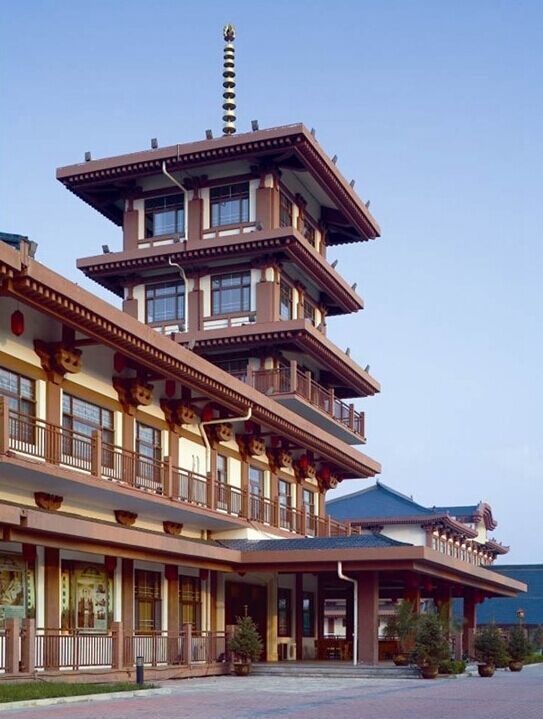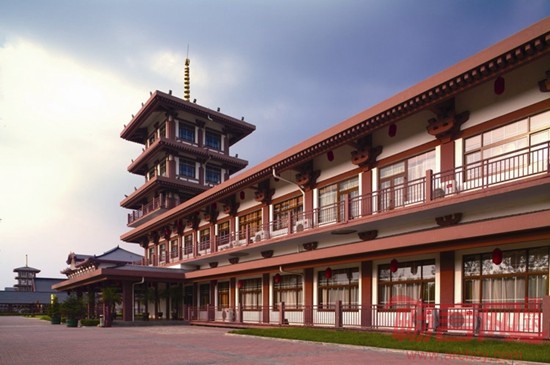 整个建筑群以规模宏大、气势雄伟、细部丰富等予人以强烈的视觉印象。其外部轮廓线设计高低错落、极富层次感,以多重体量关系弱化了大型建筑群的超大尺度。中轴线位置则突出主体大殿,两侧辅以两种不同形式的塔楼,由此构成整个视觉的瞩目点。同时,每幢建筑的入口处均设计一座日式风格的门楼,使其沿街立面更加丰富,主题更加鲜明。而细部构件的精美设计也充分尊重日式构造传统,进一步烘托了建筑群整体的气势与氛围。