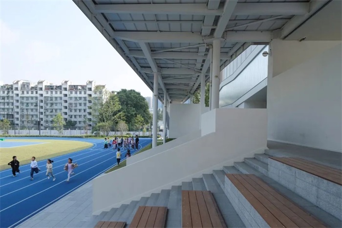 设计为这一愿景留出了空间上的可能性。方形回廊所环绕的日常教学空间满足独立封闭管理的需求,保障了学校自身运行的安全性和私密性。而东侧的文体活动设施则可被视作一个单独的组团,有条件在合理的管理机制下,于周末等时段面向大众开放。