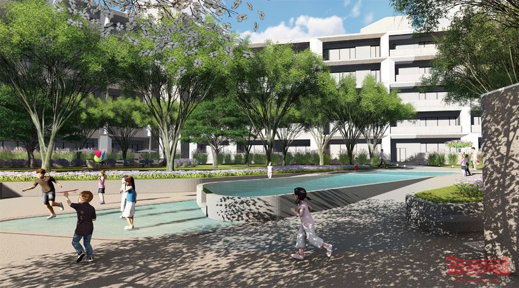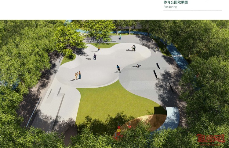 体育公园具备篮球场、乒乓球场、亲子MINI GOLF、跑道、中央草坪、下沉餐厅等等设计,是一处新型多功能现代体育公园。