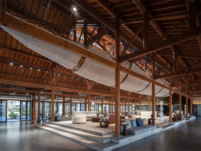 从烘茧工厂到艺术酒店的蜕变,考验的是如何将全新的功能装入历史的躯壳中,项目场地天生缺乏良好的外部视野,螺蛳壳里做道场,经营内部便是该项目设计工作中的日常修行。