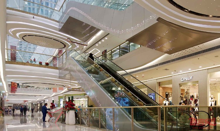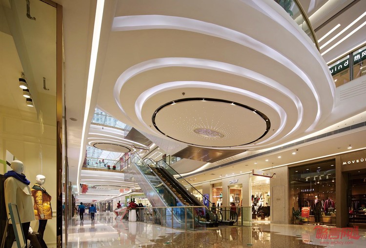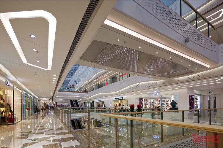 整个商场的细部设计贯穿“行云流水”的设计理念,其中扶梯设计在构思时匠心独运地设计成由冲孔图案形成的流水图案。