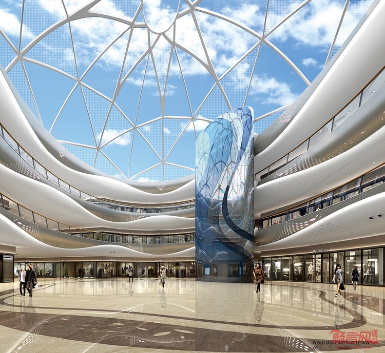 西安大明宫万达广场商业空间采用独特的“S”形流线,室内设计以此为切入点,通过不同波长的弧线,在中庭、步行街、中庭两点一线间,打造出行云流水般的空间形态。