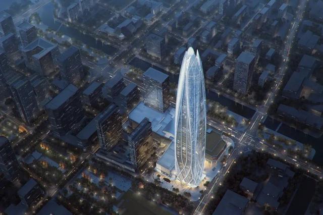 塔楼的设计灵感源自大自然中莲花的形象——莲花在中国古诗词中常被用来寓意高洁、优雅。大厦弧形、舒展的有机形态,犹如一朵晨曦中含苞待放的莲花,从水中缓缓升起,尽显“朝露映晨曦,风吹新荷动”的生机勃勃——塔楼从城市的任何角度望去,都是城市天际线上辨识度极高的新地标,也将成为宁波的城市新名片。