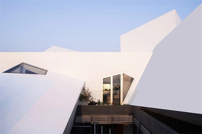 建筑作为单一的object(物件),由纯粹的几何体形成。形式上,运用矶崎新的手法理论,采用建筑的基本元素:grid(系统网格)和frame(框架),并对其进行拉伸、倾斜、切断的拓展运用,最终形成符合功能需求的具有公共性气质的空间。